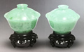 民国 翡翠蓋碗一対